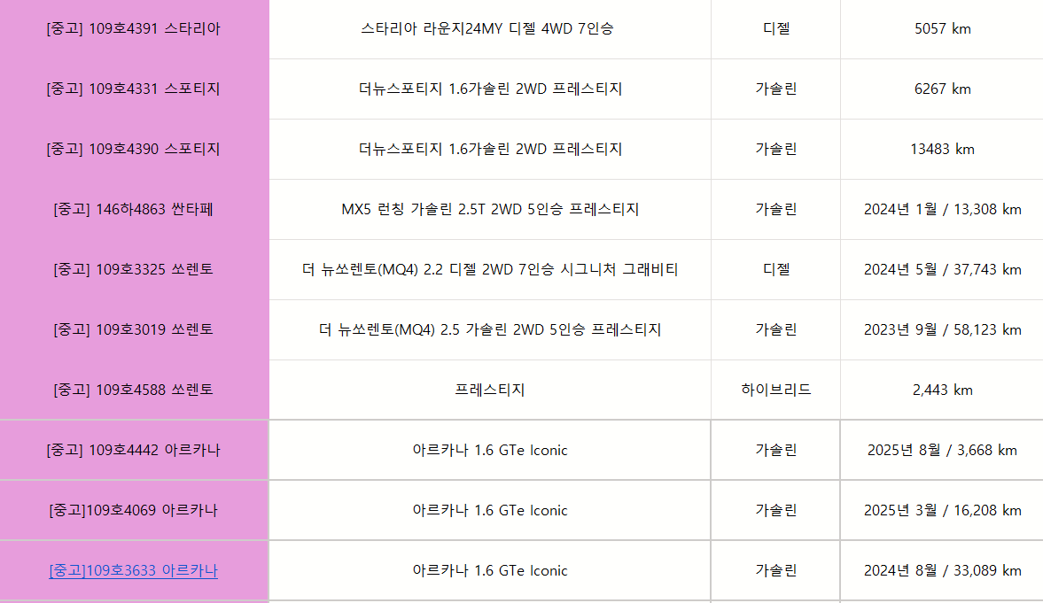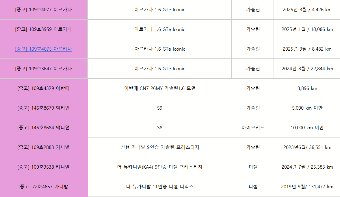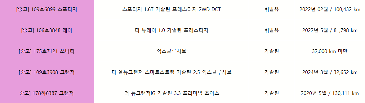 궁금하신 차량이 있으시면 차량번호로 문의 주시면